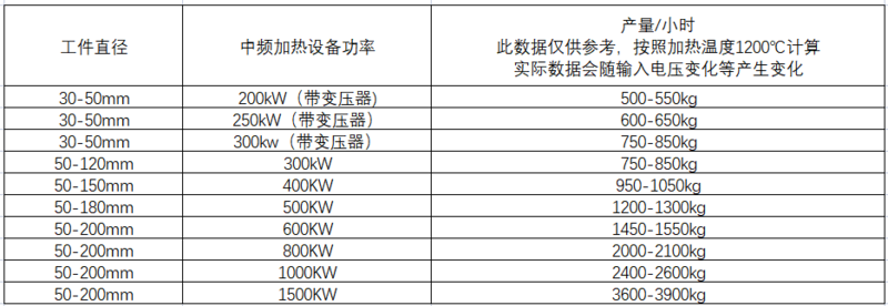 一、熱鍛中頻加熱爐技術要求: 1、額定輸入:三相交流電,頻率為50赫茲(或60赫茲),線電壓為380V/660V等多種。 2、額定輸出:當處于額定電壓或額定負載時,輸出功率可平滑連續調節,其調節范圍為額定功率的5%到最高值。 3、過電壓保護:當輸出電壓超過輸出電壓的1.1~1.2倍或超過電壓整定值時,過電壓保護系統動作,使裝置自動停止工作,并發出報警信號。 4、過電流保護:當逆變橋直通短路時,保護系統立即動作,使裝置自動停機,并發出過流指示信號。同樣,如輸出電流超過整定值時,海山電爐保護系統也使裝置自動停機,并發出過流指示信號。 5、水冷系統:當工作壓力低于一定值時,熱鍛中頻加熱爐能自動停機,并點亮面板上的水壓指示燈。 6、限流、限壓環節:熱鍛中頻加熱爐使輸入電流和輸出電壓限制在設定值內。 7、感應器加熱線圈:根據加熱工件的長短和工件的工藝參數海山電爐專門設計,由大截面矩型銅管繞制而成,管內通冷卻水,為加強其絕緣強度,在感應線圈表面固有特殊的絕緣隔熱材料,以減小熱損失,保護線圈絕緣層。 8、紅外測溫:熱鍛中頻加熱爐在出料端設置紅外測溫裝置,使鋼棒加熱的溫度一致。 9、人機界面:熱鍛中頻加熱爐采用觸摸屏或工控機系統的遠程操作臺,高度人性化的操作指示。 10、節能效果:熱鍛中頻加熱爐省電節能10%以上,諧波污染很少。 11、運行穩定:熱鍛中頻加熱爐使用壽命長,加熱溫度穩定,芯表溫差小。 12、加熱感應器具有互換性:熱鍛中頻加熱爐在生產過程中,加熱毛坯品種繁多,需設置多種規格的感應加熱器,共同一個爐架。此時可通過海山電爐獨有的總上、下水快換接頭和海山電爐研制的新型槽路互換機構,保證在很短的時間內完成感應器的互換。 13、升溫速度快,氧化皮極少:熱鍛中頻加熱爐利用電磁感應原理,熱量在工件自身靠渦流產生。氧化皮極少,尤其適用精密鍛造。 14、加熱平穩性:熱鍛中頻加熱爐適應于大型棒料連續送進,可減少對中頻電源的沖擊。并且與電源組成溫度閉環控制,保證還料加熱溫度的首尾一致,芯表溫差小。 多種進出料結構。 二、熱鍛中頻加熱爐的配置: 熱鍛中頻加熱爐的基本配置包括中頻加熱電源、感應器、爐體支架、上料機構、出料機構、測溫儀表、溫度分選等。 三、熱鍛中頻加熱爐的特點: 1、熱鍛中頻加熱爐輸出功率從100kW 到25000kW 2、熱鍛中頻加熱爐工作頻率范圍 100-8000Hz 3、工作電壓范圍 340-430V 4、熱鍛中頻加熱爐加熱工件直徑從20mm-200mm 5、熱鍛中頻加熱爐可加熱方形,長方形及異性工件 6、工件可采用手動,半自動,全自動傳送方式 7、可根據客戶需求設計熱鍛中頻加熱爐用于工件整體加熱和局部加熱 四、熱鍛中頻加熱爐的選型如下表: