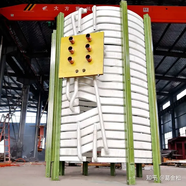 感應(yīng)爐的線圈是感應(yīng)加熱爐的核心部位,是由矩形紫銅管繞制而成的螺旋狀線圈,與感應(yīng)爐的變頻電源配套使用,也是變頻電源的負(fù)載,二者不可分開。那么,感應(yīng)爐的線圈具體結(jié)構(gòu)、特點和性能指標(biāo)有那些呢?海山電爐小編就來介紹這個感應(yīng)爐的線圈。 ![]() 50噸真空感應(yīng)熔煉爐線圈 1、海山電爐的感應(yīng)爐線圈支撐系統(tǒng)是采用特殊的復(fù)合材料,使得感應(yīng)爐線圈的每一匝都被牢牢地固定、鎖緊。這樣,就消除了線圈匝間短路的可能性。而有些廠家提供的線圈設(shè)計簡易,剛性差。在運行過程中,由于電磁力的作用會引起振動,如果線圈沒有足夠的剛度,這種振動力將大大影響爐襯的壽命。事實上,感應(yīng)線圈牢固堅實的結(jié)構(gòu)將大大延長爐襯的使用壽命。 2、海山電爐的厚壁感應(yīng)爐線圈提供了更多的加熱能量。海山電爐的厚壁感應(yīng)路線圈與其他截面的感應(yīng)線圈相比具有更大的載流截面,因此線圈電阻低,更多的能量可以用加熱。并且由于四周管壁的厚度均勻,因此它的強度要比管壁不均勻、一邊管壁較薄的線圈結(jié)構(gòu)的強度高。也就是說,我們這種結(jié)構(gòu)的感應(yīng)爐線圈不易發(fā)生因電弧和膨脹力而引起的損壞。 3、海山電爐的感應(yīng)爐線圈的匝間開放空間有利于水汽的排出,減少了因水汽蒸發(fā)引起的匝間短路現(xiàn)象。 4、海山電爐的感應(yīng)線圈附帶了水冷線圈,可以延長了爐襯的壽命。良好地冷卻爐襯不僅能提供更好的絕熱及阻熱特性,而且可以提高爐襯的壽命。為了達(dá)到這種目的,海山電爐在爐體設(shè)計時,在頂部和底部分別加了水冷線圈,這樣不僅能夠起到均勻爐襯溫度的目的,而且降低了熱膨脹。 5、海山電爐的感應(yīng)爐體在線圈不同部位裝有不同形狀的打結(jié)體。海山電爐針對不同的應(yīng)用,在感應(yīng)線圈的頂部和底部有不同形狀的打結(jié)體。這些打結(jié)體采用特殊的耐火材料制成。 6、海山電爐的感應(yīng)線圈附帶了水冷線圈,可以延長了爐襯的壽命。良好地冷卻爐襯不僅能提供更好的絕熱及阻熱特性,而且可以提高爐襯的壽命。為了達(dá)到這種目的,海山電爐在爐體設(shè)計時,在頂部和底部分別加了水冷線圈,這樣不僅能夠起到均勻爐襯溫度的目的,而且降低了熱膨脹。海山電爐5~8倍于常規(guī)壓力的水壓(1.7MPa)實驗,歷時300min無滲漏才可裝配。在感應(yīng)線圈的上部和下部都設(shè)有銅管制水冷圈。其目的是使?fàn)t襯材料在軸向受熱均勻,延長爐襯的使用壽命。 ![]() |